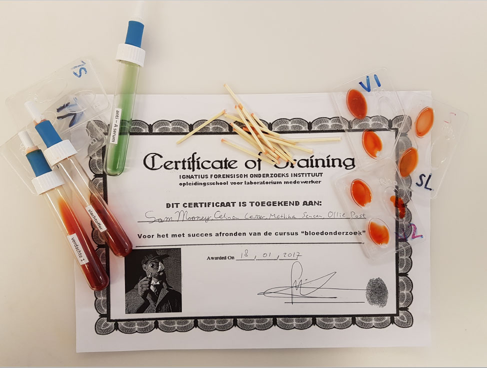 In december werden alle eerste klassen bij het exacte combinatievak X8 ingeschakeld om samen met inspecteur Groen een vreselijke moord op een stagiaire op te lossen. Gewapend met politiebadges, vergrootglazen, een hoge concentratie en een ware onderzoeksmentaliteit gingen ze op zoek naar de waarheid, om aan het einde hun bevindingen te presenteren in een politiedossier. De hamvragen waren: wat was er precies gebeurd, waren er wellicht getuigen en wie waren er betrokken bij de moord?