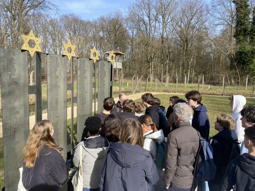 We vervolgen onze reis naar Kamp Vught. In dit voormalig concentratiekamp zaten tijdens de oorlog tienduizenden Nederlandse joden, verzetsstrijders en andere ongewenschten gevangen. Velen overleefden de ontberingen niet. Tijdens een rondleiding door het voormalige concentratiekamp Vught maakten de leerlingen kennis met de gruweldaden van de Nazi’s, het leven in barakken en stonden we stil bij het kindermonument. Een ode aan honderden Joodse kinderen die op jonge leeftijd vanuit Vught naar de vernietigingskampen werden gedeporteerd. Slechts enkelen overleefden. Ook maakten we een wandeling door het bos naar de fusilladeplaats waar talloze verzetsstrijders werden vermoord. Tegenwoordig is deze plek een monument. Tussen de namen op de plaquette zijn ook vele Amsterdamse verzetstrijders te zien. Stadsgenoten die zijn gestorven voor onze vrijheid.